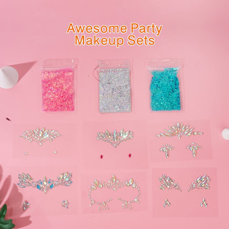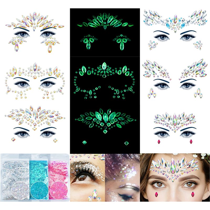 - 【Easy To Use & Reusable】DECOYARDOO face jewels are attached to large adhesive layouts, so you don't have to place each jewel one at a time. All gems are self-adhesive, with pre-attached glues so it is easy to peel off and stick according to the designs. They come in individual packaging (6 sheets and 3 chunky and fine glitter mix). Besides, these stickers can be reused several times, clean them after the first time to use or the glue dried out, just reapplied with eyelash or body glue.