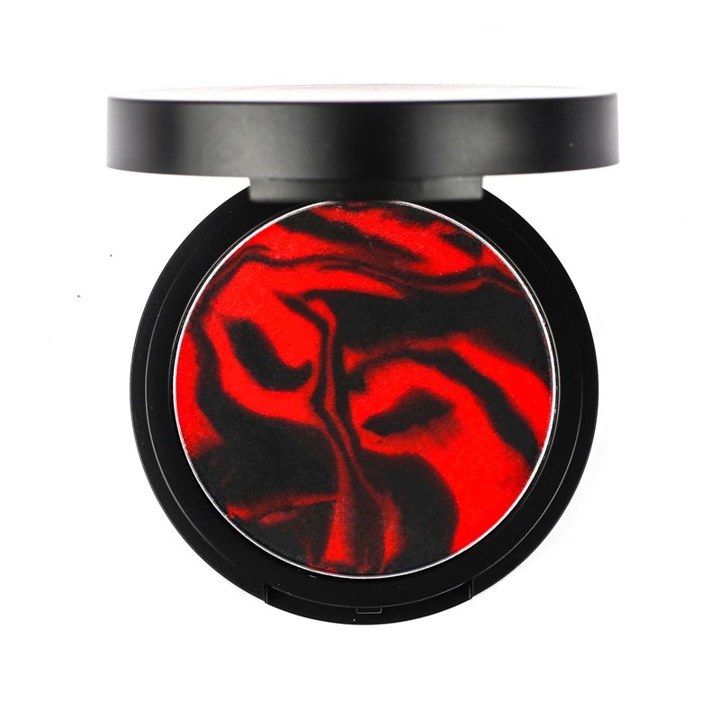 - This face powder is semi moist transparent paste, a compact pressed powder. It like a solid gel/jelly, The formula looks like clear gel / jelly and a pattern that looks like a red lava, it does not leave any red residue, or any residue whatsoever