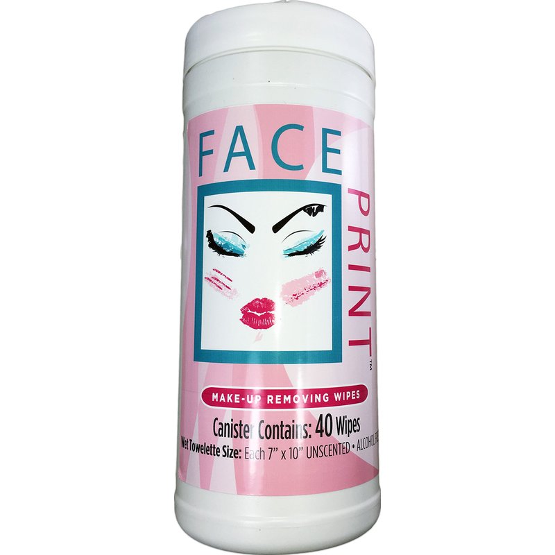 - Face Print Makeup Remover Cleansing wipes easily removes all traces of makeup, even waterproof mascara, in “one” easy step.