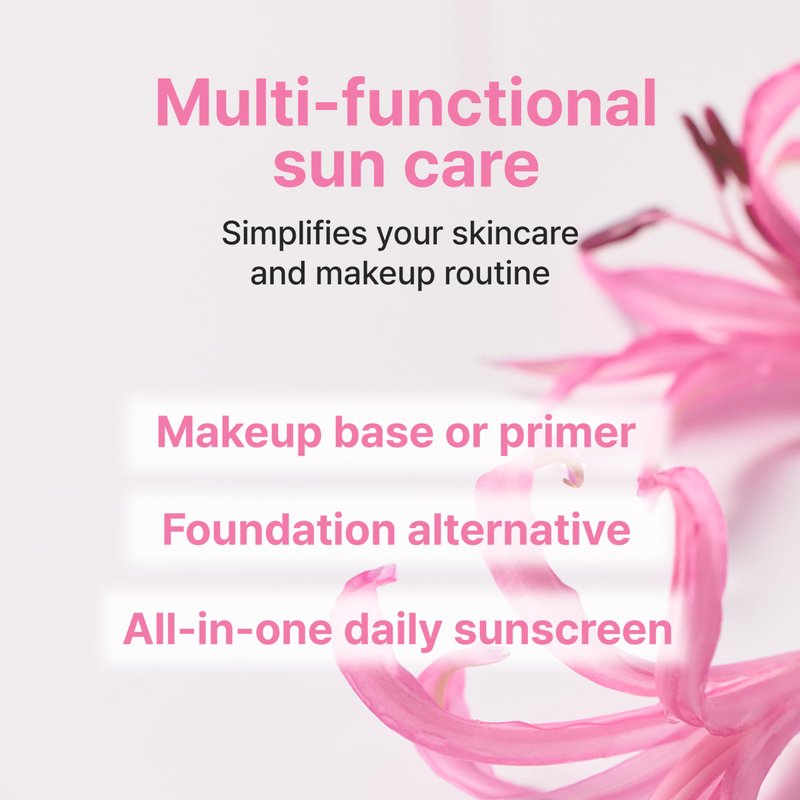 - Natural tone-up sunscreen - Naturally evens out skin tone - sheer coverage