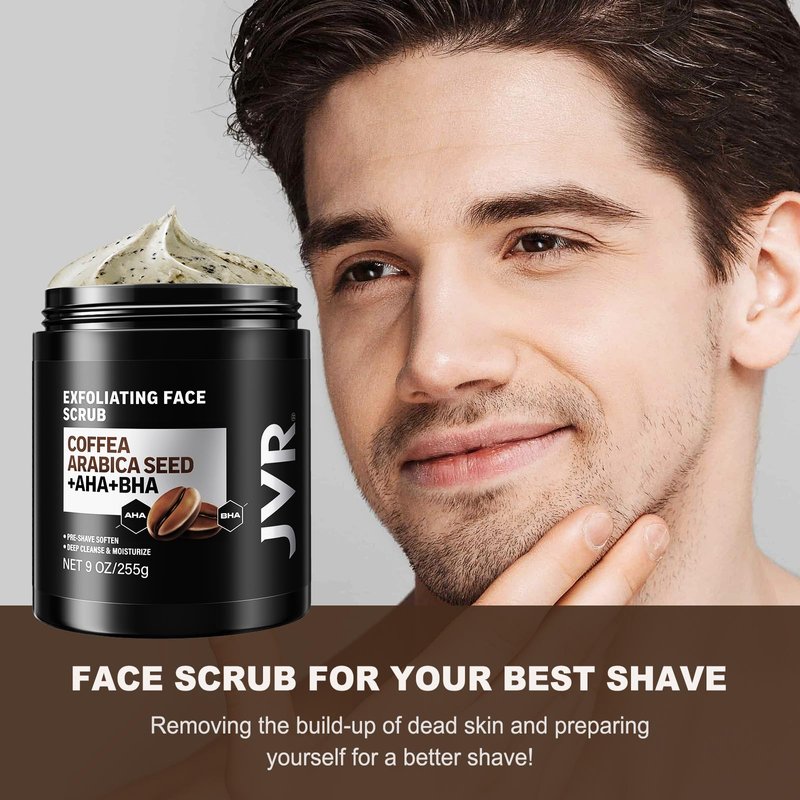 - Exclusive Formulas: Unique double addition of physical scrub and acidic formulas: COFFEA ARABICA BEAN from South America, Alpha hydroxy acid (AHA) and salicylic acid (BHA), Vitamin E. Perfectly balances dryness, fights oily/thick cuticle skin to avoid acne or shaving bumps and breakouts, especially for men who are prone to oily build-up, blackheads, or ingrown hairs