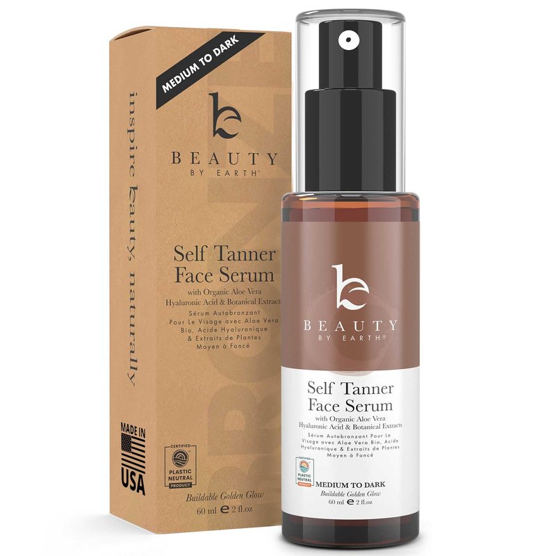 - SELF TANNERS: Beauty by Earth has several clean self tanner formats (as close as you will get to organic self tanner) including, self tanning drops, face tanning drops, tanning water, self tanner lotion, face tanning lotion & many more.