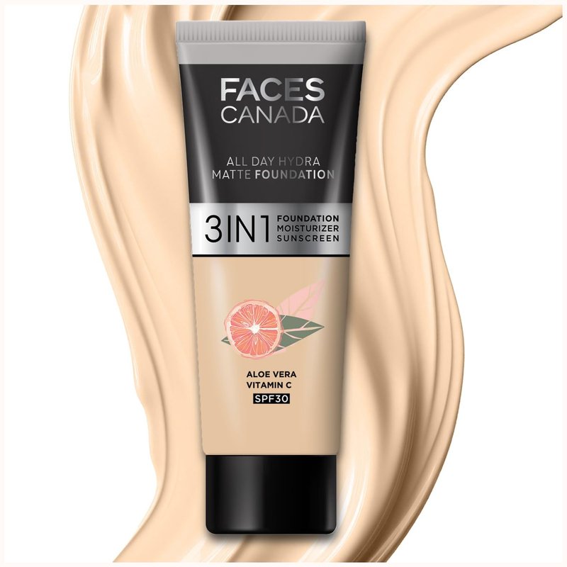- 3 in 1 Matte Foundation: FACESCANADA All Day Hydra Matte Foundation is a multi-benefit foundation, moisturizer, & sunscreen. The benefits of a high-coverage foundation, a broad UV spectrum of SPF 30 and the goodness of a moisturizer are all packed in one product.