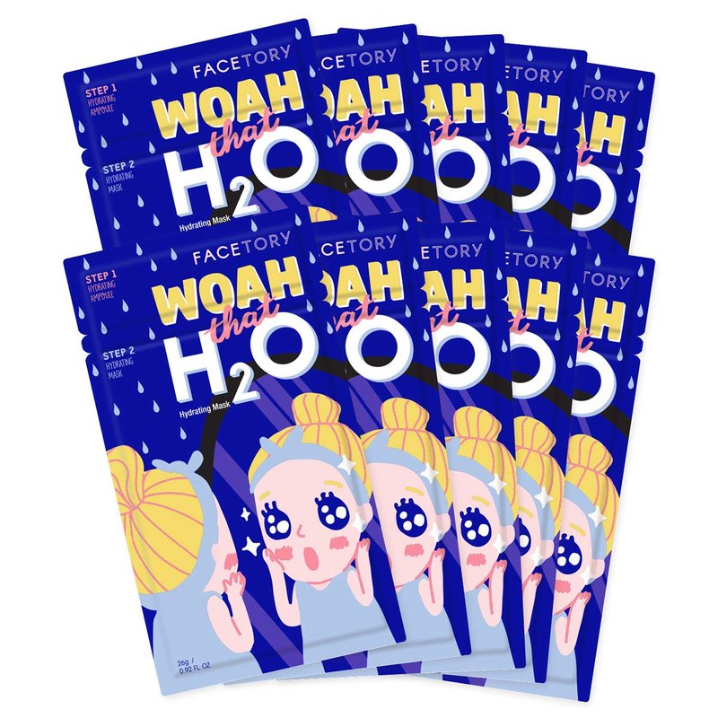 FACETORY K Beauty Face Mask Skin Care - Woah That H2O 2-Step Sheet Mask with Ceramide & Sodium Hyaluronate + Hydration Ampoule | Hydrating, Moisturizing, Balancing (10 Pack)