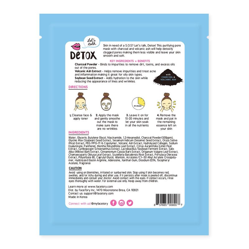 FACETORY Let's Talk, Detox Purifying Sheet Mask with Charcoal and Volcanic Ash - For All Skin Types - Detoxifying, Soothing, and Purifying (Pack of 10)