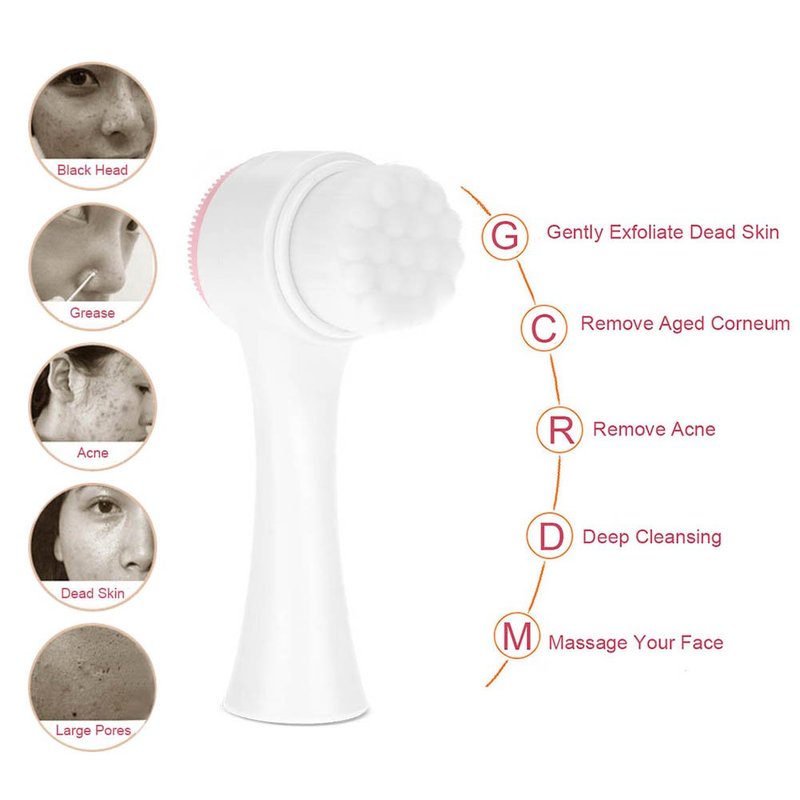 - GENTLE MAKEUP REMOVAL : The soft and dense double sided silicone face brush can remove surface dust, grease, cosmetic , deeply clean your face pore. Double sided face scrubber will effectively prevent blackhead,