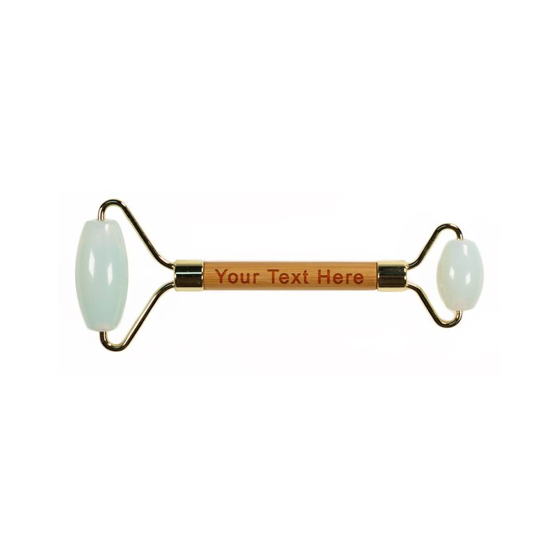 Facial Roller for puffy eyes and face, and reduce fine lines. Jade stone with bamboo handle is customizable.