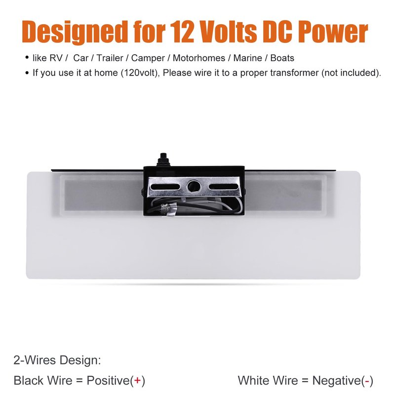 - 【Versatile lighting options】These wall sconces are versatile lighting options that can be used in a variety of spaces, including living rooms, bedrooms, bathrooms, kitchens, dining rooms in your RV, camper, or boat. They provide ample light for reading, working, or relaxing, and can be used as a standalone lighting fixture or as a complement to other lighting sources. Make sure the voltage for your vehicle is 12-24Volts DC.