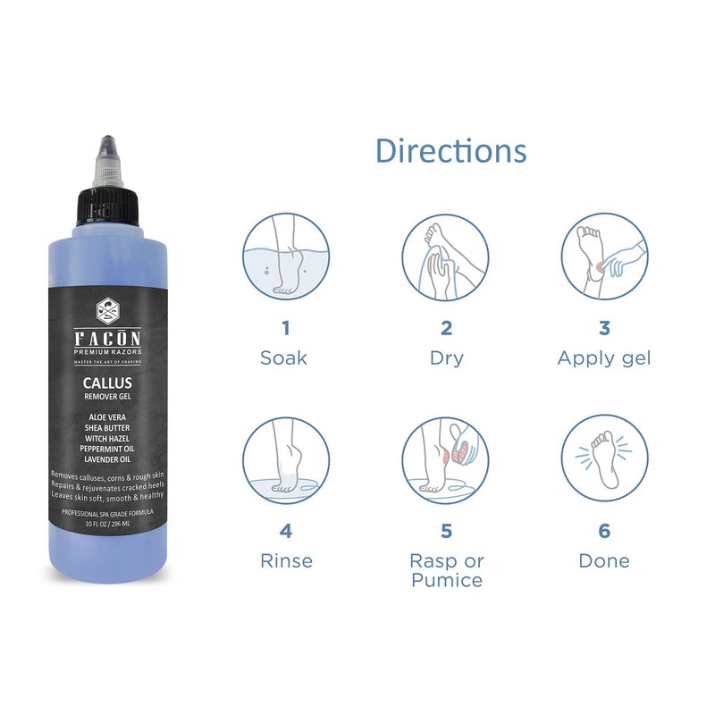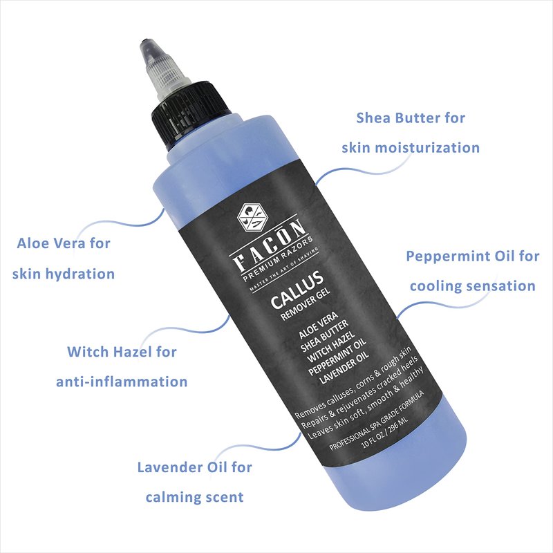 Facón Professional Clear Callus Remover Gel with Skin Soothing Aloe Vera & Shear Butter, Menthol Peppermint Oil & Witch Hazel, Lavender Oil Scent - Removes Calluses & Rough Skin (10 fl oz / 296 ml)
