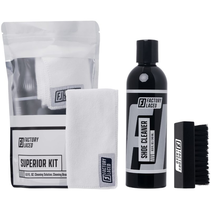 FACTORY LACED Shoe Cleaner Kit - Sneaker Cleaning Kit Includes: Premium 8oz Sneaker Cleaner, Brush and Microfiber Towel - Safe on all Fabrics