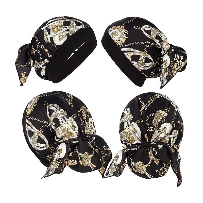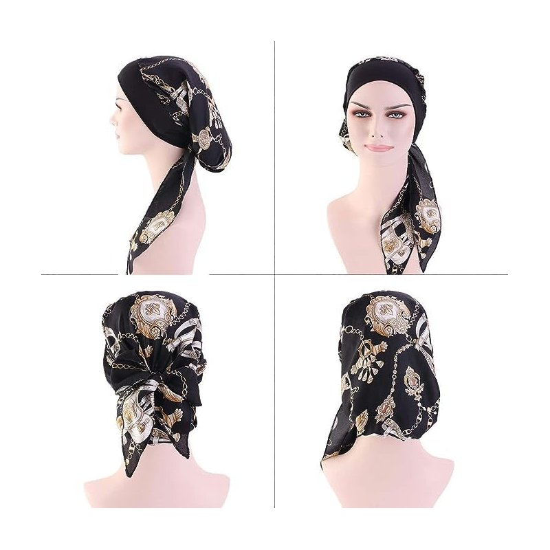 - Stylish designs for hair loss women indoor or outdoor use.Turban is elegantly finished all around. Can be worn over or behind the ears. Can be used as a fitted bandana tichel. Perfect for travel. Comfortable, soft, no-slip, pre tied, easy to wear, fashion chemo hat turban head scarves.