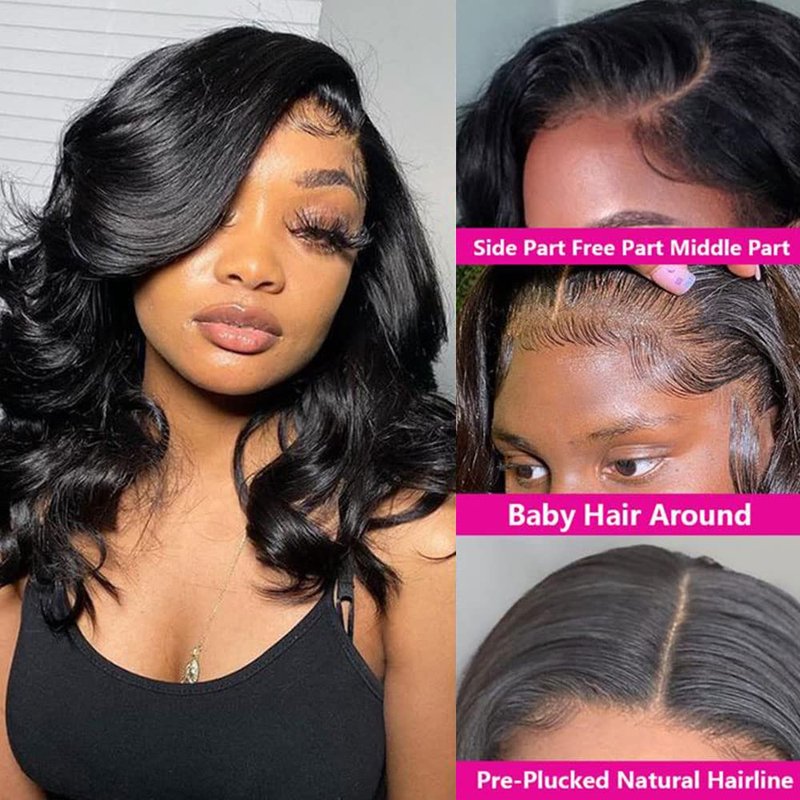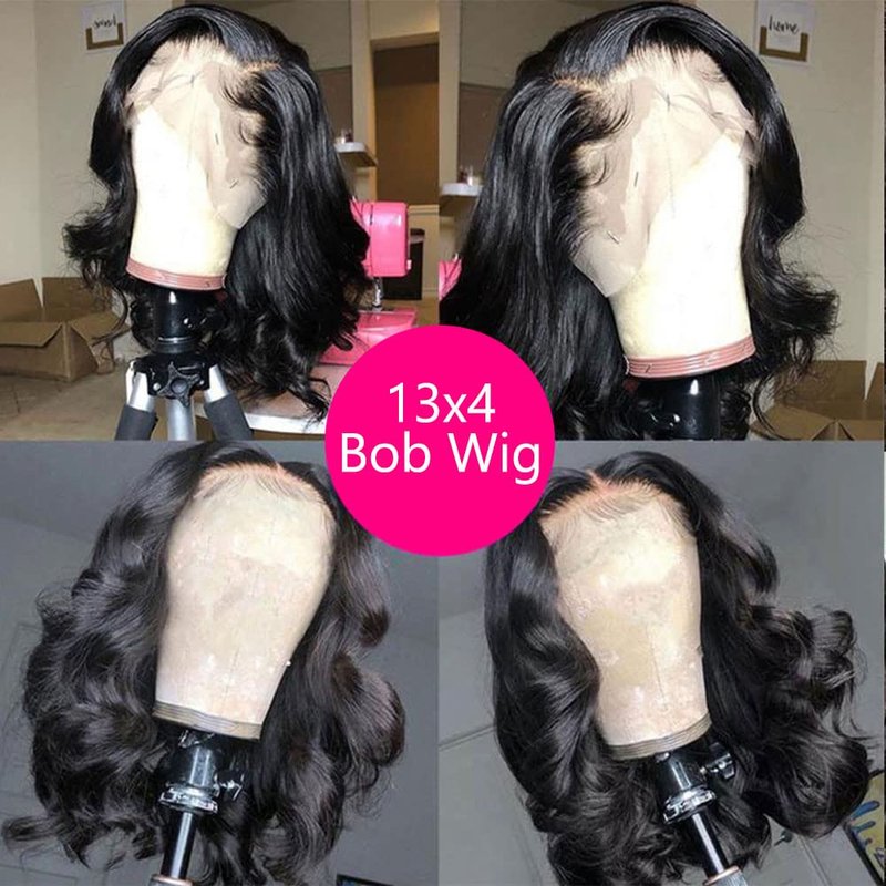 Fadaina 16 Inch Bob Wig Human Hair Wavy Body Wave 13x4 Lace Front Human Hair Wigs For Black Women Glueless Wigs Human Hair With Elastic Band Lace Frontal Wigs