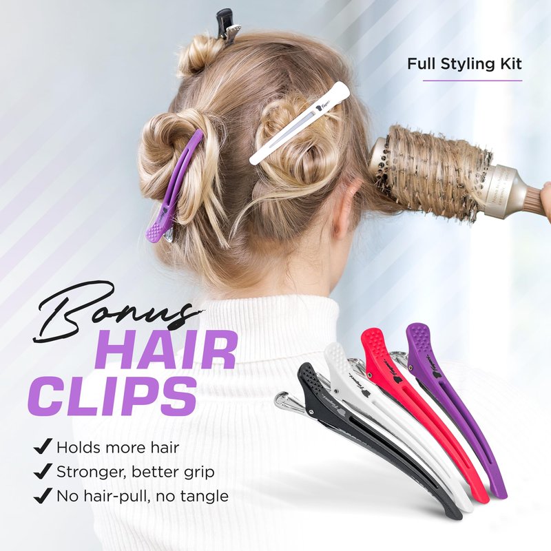 - Hair clips have a unique design and high quality. The base metal is thin but strong. The powerful arch and silicon band allow you to automatically adjust to any amount of hair without slipping while working with wet hair, in the haircut, blowdry, straightening and apply hair coloring.