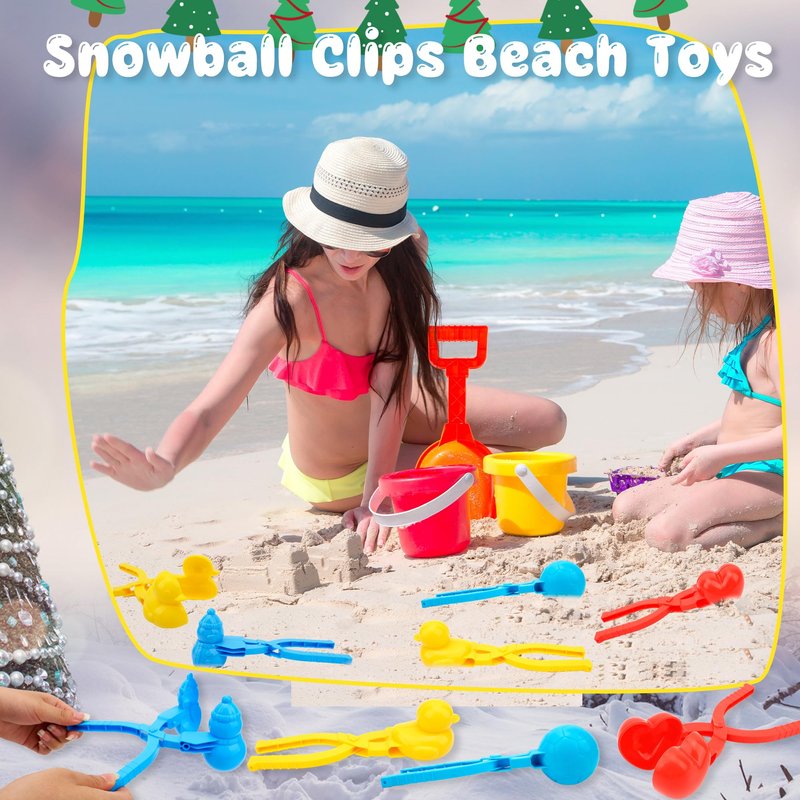 Fahacop 8 Pcs Snowball Maker Clips with Handle Duck Snowman Heart Football Shape Snowball Maker Toys for Kids Adults Winter Snow Fight Games Beach Sand Castle