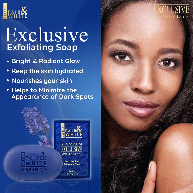 FAIR & WHITE Exclusive Exfoliating Soap, 200g / 7oz - Moisturizing Bar Soap For Face and Body