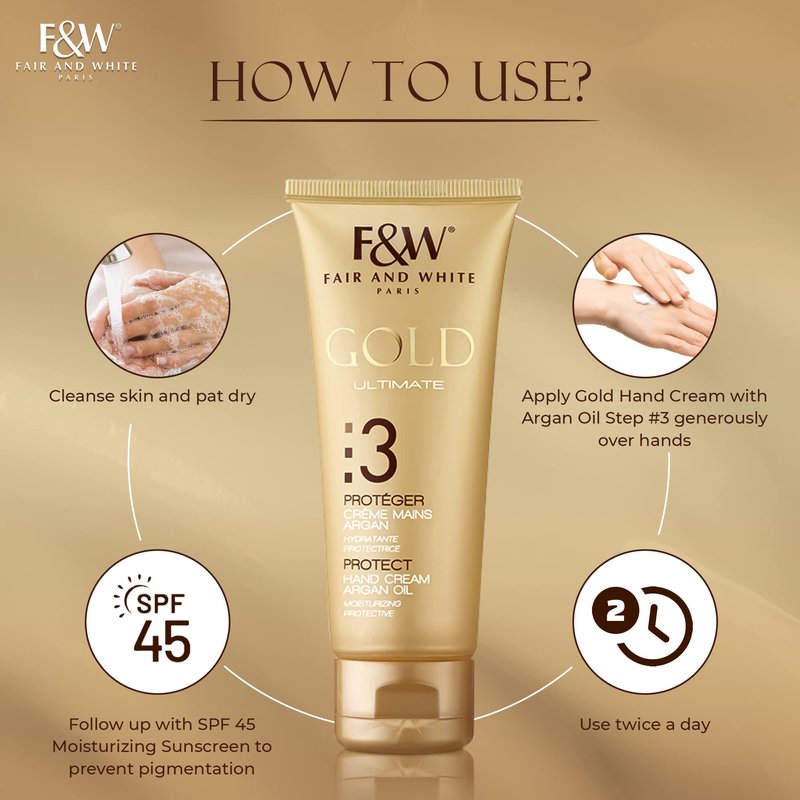 FAIR & WHITE Gold Hand Cream - 4.4 Fl oz / 125 ml - Formulated to Remove Stretch Marks with Shea Butter and Glycerin