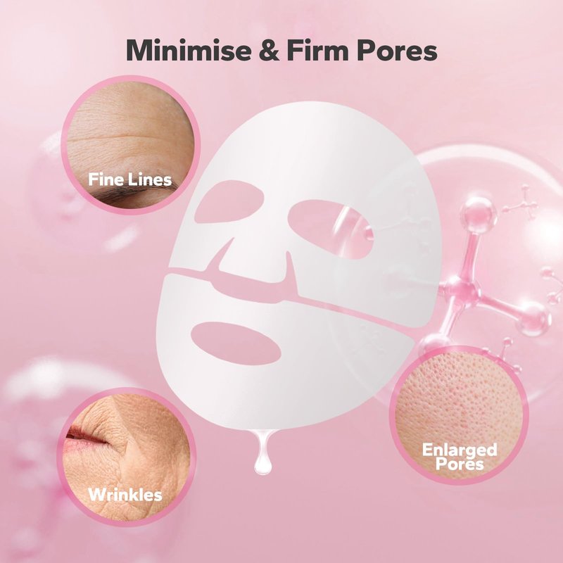 - Minimise & Firm Pores: This mask reduces the appearance of fine lines and wrinkles, leaving skin looking smoother and more youthful.Ultra-low molecular weight collagen enhances skin penetration and absorption. It refines enlarged pores, increases skin elasticity immediately on application and visibly smoothes out fine lines and wrinkles.