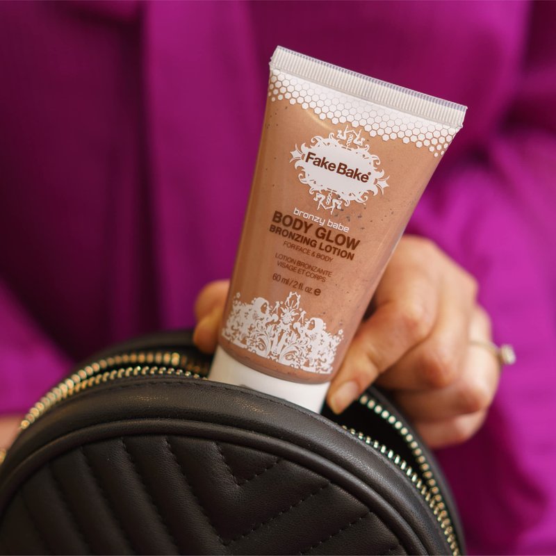 Fake Bake Bronzy Babe Body Glow Face & Body Tinted Moisturizer Lotion, Highlighter, Makeup & Moisturizing Skincare Healthy Color Boost from Plants & Vitamins - For All Skin Tones, Women & Men - 2oz