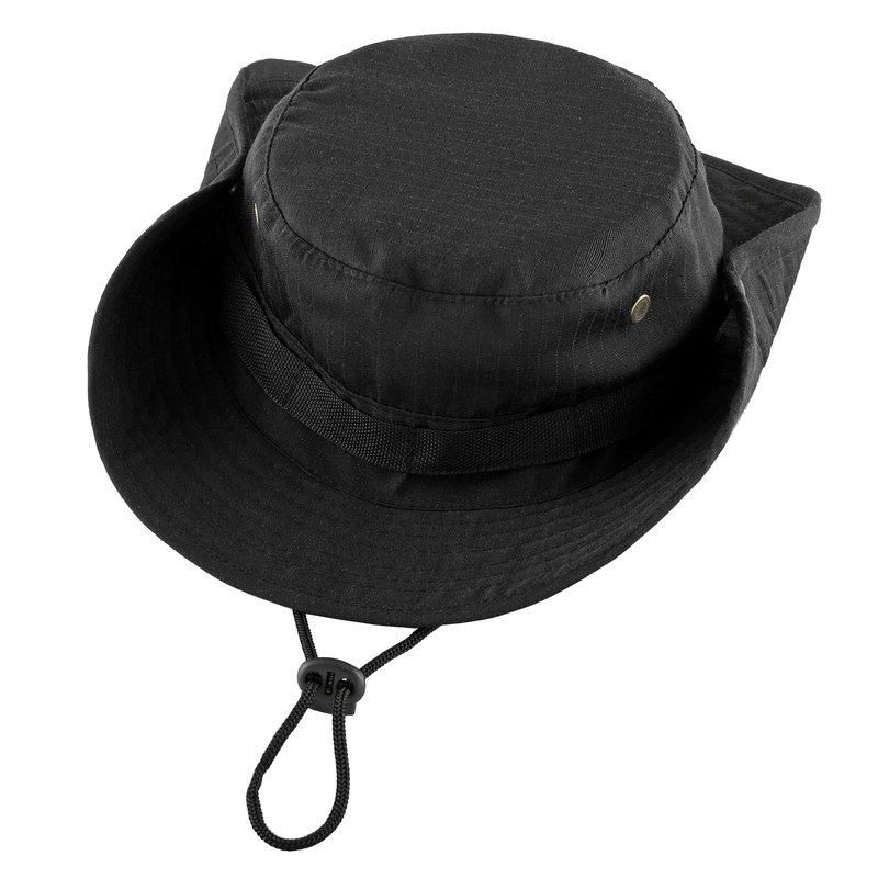 FALETO Outdoor Boonie Hat Safari Fishing Hats Sun Hat UV Protection Foldable Military Cap Wide Brim Breathable Black