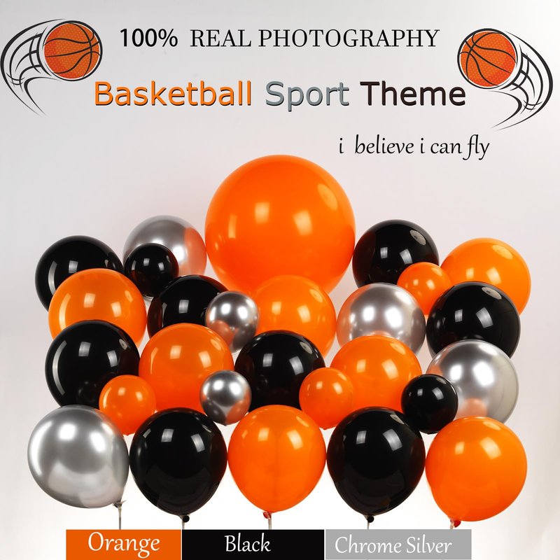 - 【Basketball Balloon set】Includes the following of 5"10"12"18"inch balloons in different sizes, we chose orange, matte black and Silver rubber balloons as the theme palette, and added a variety of different colors of aluminum foil stars ,Basketball Balloons and Glue dot Kit allows you to create a cheerful and energetic atmosphere, very suitable for outdoor indoor sports theme parties.