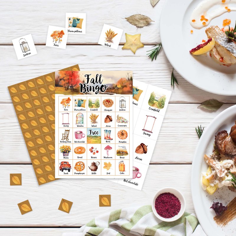 Fall Bingo Game Cards, Autumn Bingo Games for Adults, Fall Harvest Bingo Cards Supplies, Thanksgiving Party Birthday Party Bingo Decor Favors, Card Gifts for Friends Family Holiday, 01