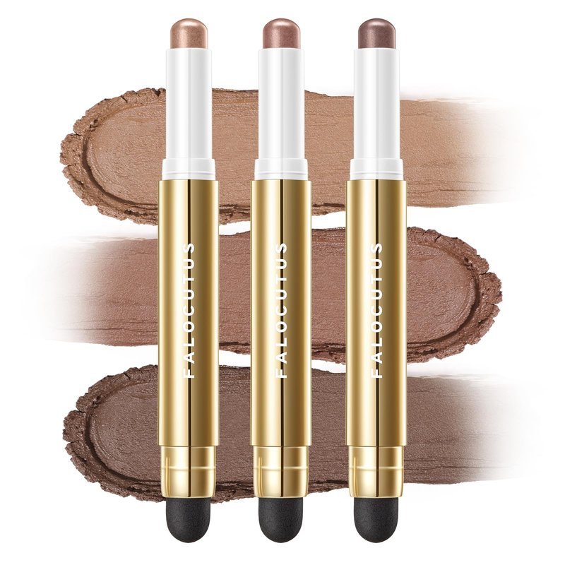 Falocutus 3 PCS Gel Eyeshadow Stick,Cream Matte and Shimmer Eyeshadow Pencil,Waterproof & Smudge-Proof Highlighter Makeup Pen,Long Lasting Shimmer Finishing and Create Resistant,Q-Nut Fiesta