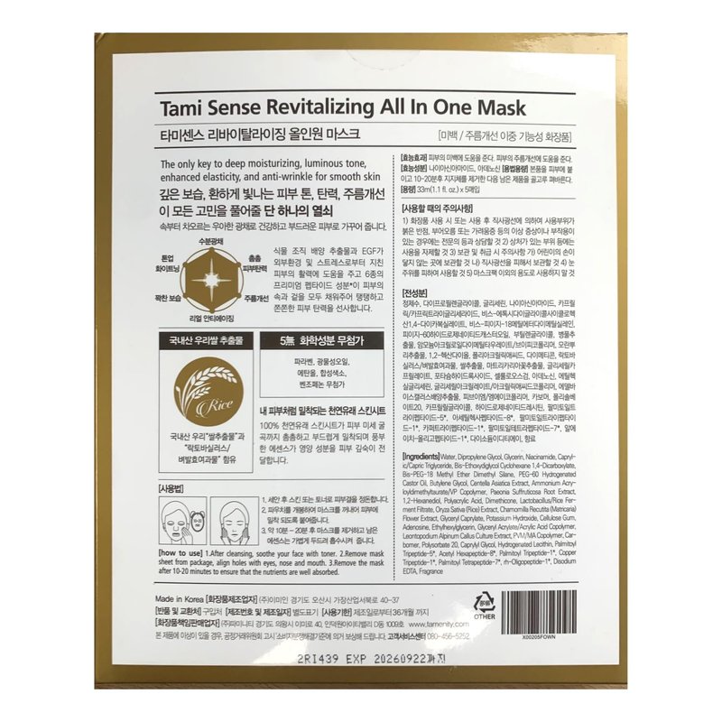 - Tami Sense Revitalizing All in One Mask 2 SET (25 EA): Better ingredients like Rice Fermented Extract Serum, Botanical Stem Cell Sheet