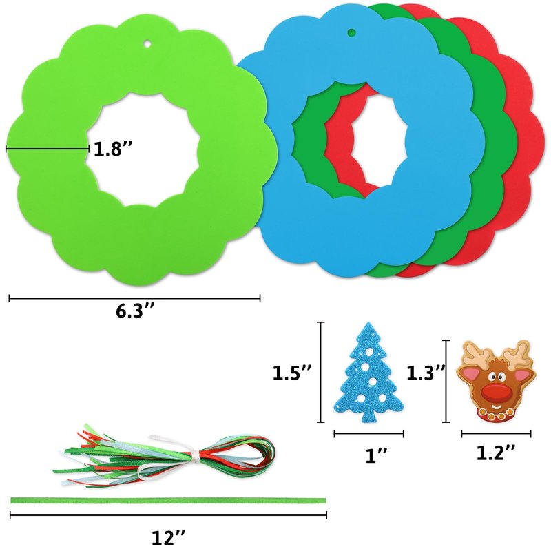 - Christmas wreath foam bases measure 6.3 inches; Christmas foam stickers measure about 1.5 inches; suitable size for kids; Christmas crafts are made of 2 mm eva foam; non toxic; safe to kids