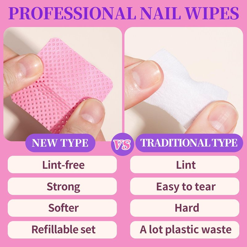 - Lint Free Nail Wipes: The nail wipes are made from non-woven fabric, which is commonly known as one of high quality and effective cleaning material. The lint free wipes for nails are soft and flexible, which means friendly to our skin and nails. Great water absorption, when using, it will not crumble or left flocks. Warm tips: Please do NOT use the lint free nail wipes on rough surface!