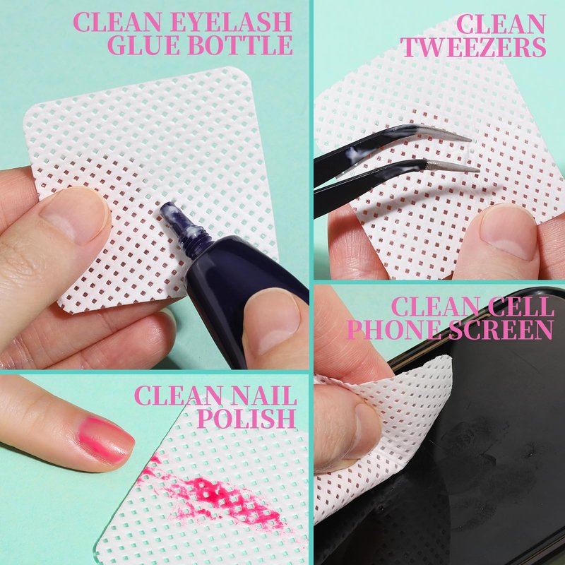 - Easy to Use--The lint free wipes are commonly used for cleaning nail surface, wiping gel nails top coat or base coat, eyelash glue, play an important role in manicure and pedicure cleaning, even eyelash extensions or other usages. Great helper as nail prep pads!