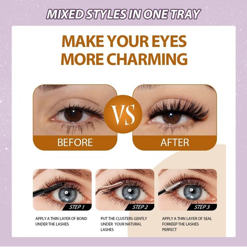 - ☘️【Comfortable & Durable】-The lash clusters are made by high quality PBT material will not irritate or damage your natural lashes, they are comfortable and skin-friendly.The eyelashes can be used at least 3-4 times if you apply them carefully