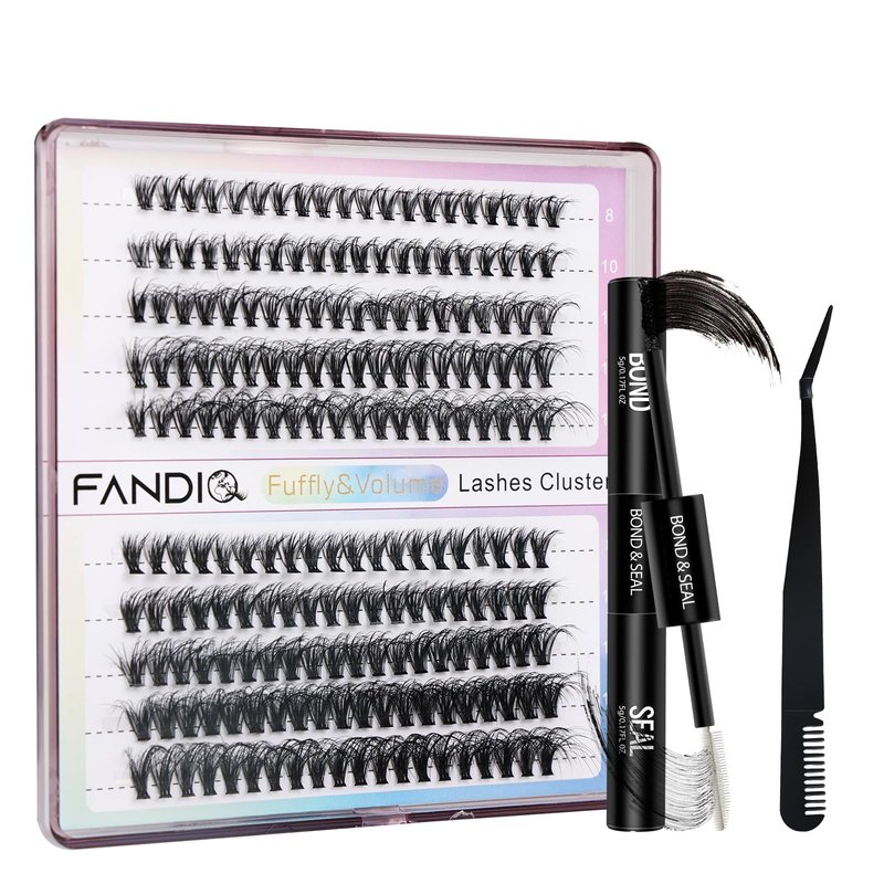 - ☘️【Fluffy D Curl Lash Clusters Kit】-FANDIQ DIY lashes extension kit includes 200pcs individual lashes,1* double head lash bond and seal and 1*lash tweezers ,offering all you need to DIY eyelash extension at home! Affordable and Save your time and money!