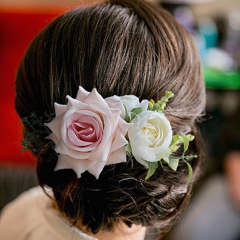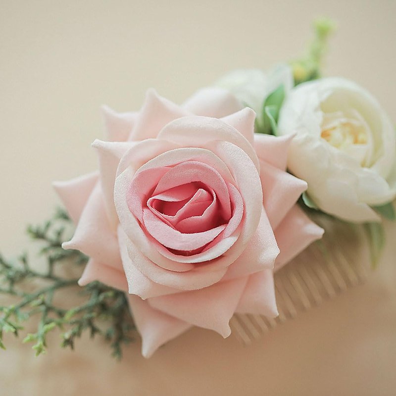 Fangsen Boho Silvery Baby Pink White Rose Floral Comb With Hair Comb Floral Hair Accessories Christmas Festival Headpiece Women Girls Party