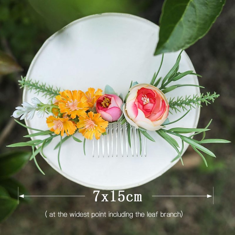 Fangsen Boho Wedding Hair Accessories Lavender Rose Hair Comb Floral Festival Headpiece for Women and Girls Silve (Orange)