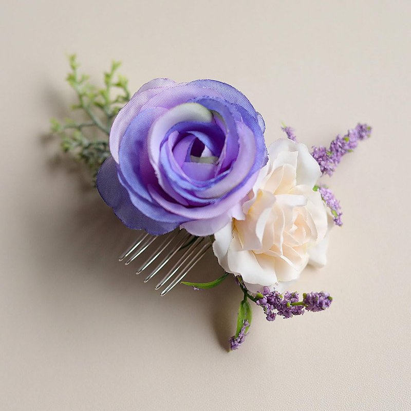 * Material: silk flower,2 flowers and 1flower buds, green plants and hair comb.