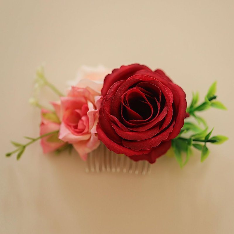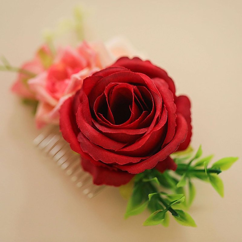 * Material: silk flower,2 flowers and 1flower buds, green plants and hair comb.