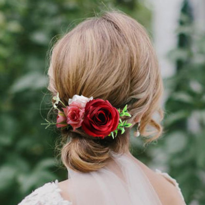 Fangsen Red Berry Rose Silver Gold Eucalyptus Leaf Burgundy Hair Comb Festival Headpiece Christmas Hair Baubles for Holiday Cosplay Women Party (#02)