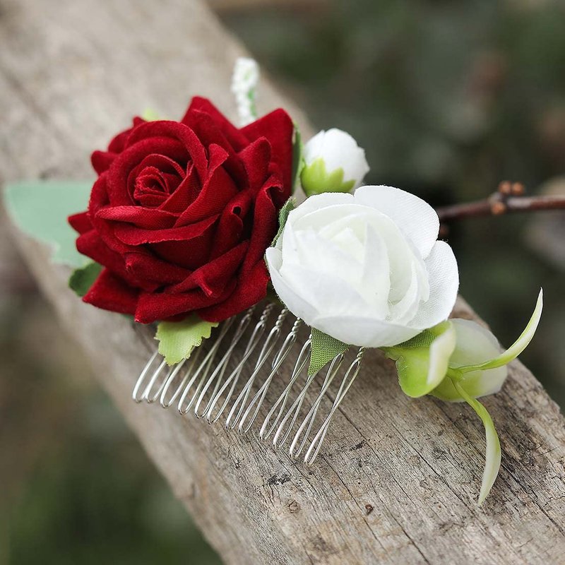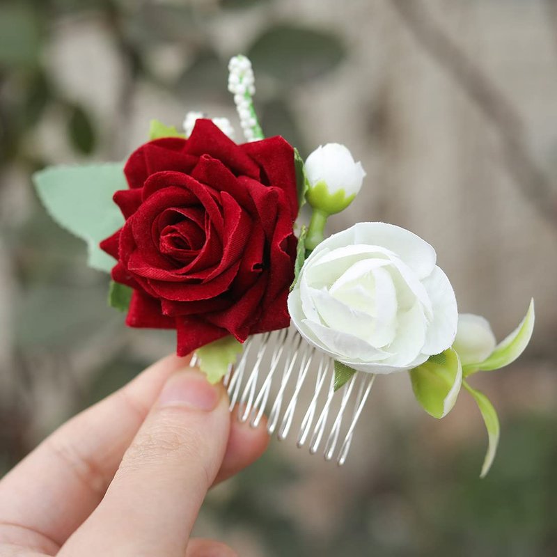 - ✿ Materials: Silk flowers, Plastic leaves,Combs.Rose hair accessories comb ,perfect for those who allergic to flowers and suffer from headaches due to strongly smelling flowersp.
