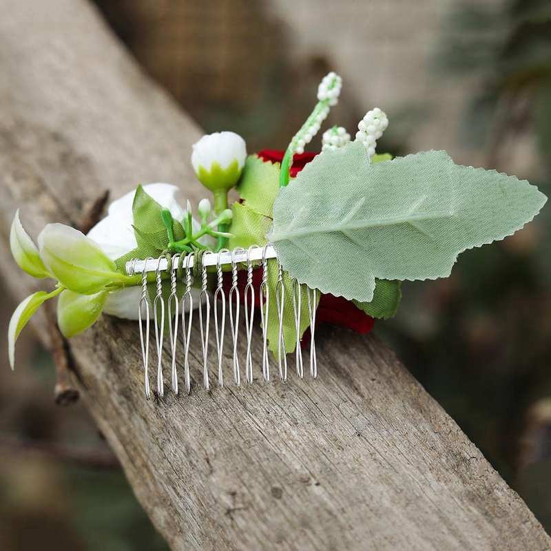 Fangsen Silver Wedding Red Rose Hair Comb Hair Accessories Women Floral Bridal Hair Accessory