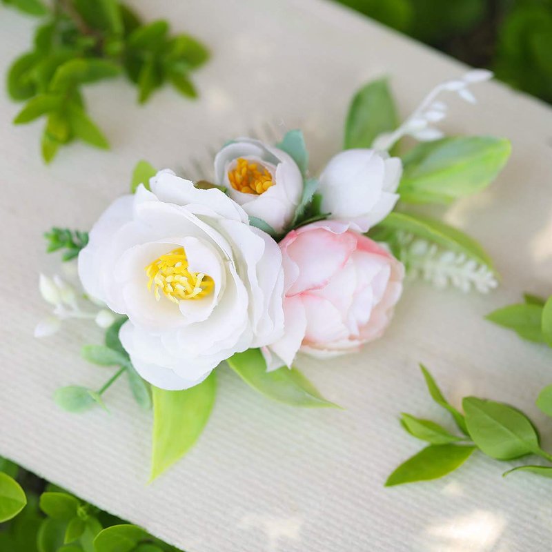 * Material: silk flower,3 flowers and 1flower buds, green plants and hair comb.