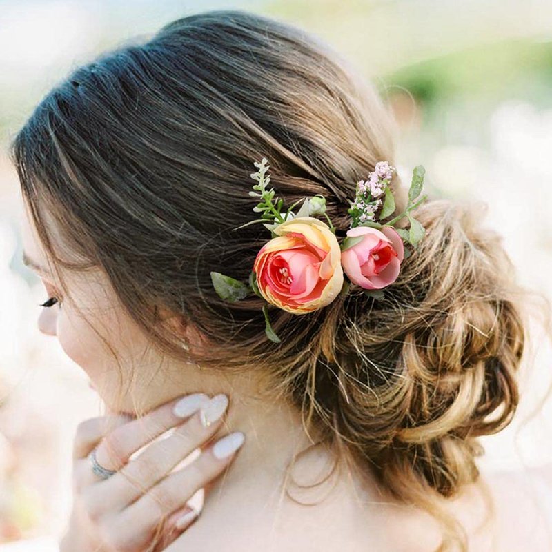 * Material: silk flower,3 flowers and 1flower buds, green plants and hair comb.