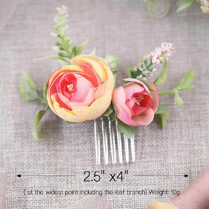 Fangsen Silver Wedding Rose Flower Pinecones Hair Comb Bridal Flower Hair Clip Floral Hair Accessories for Women and Girls Ivory Pink