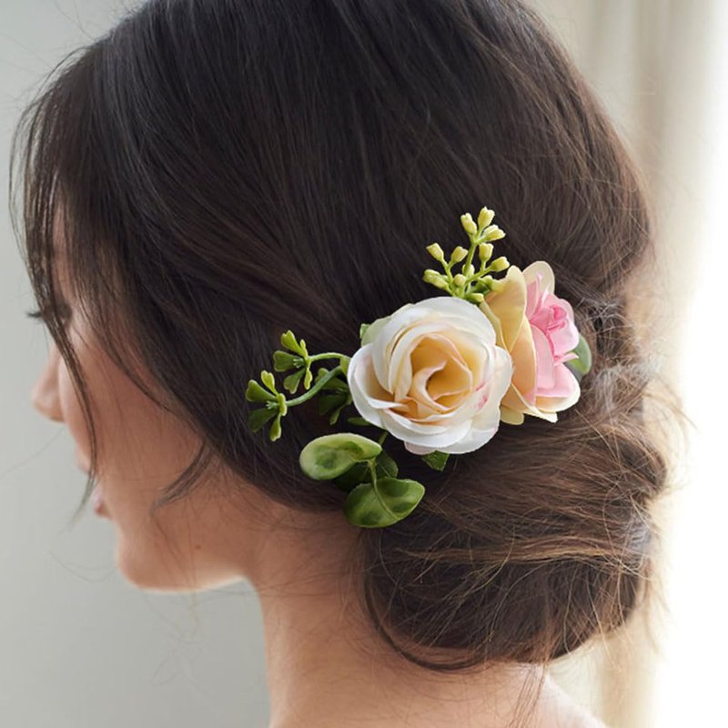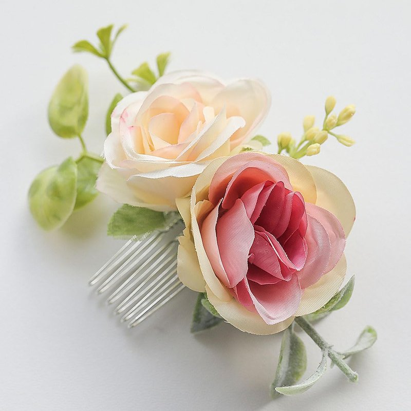 * Material: silk flower,1 flowers and 3 flower buds, green plants and hair comb.