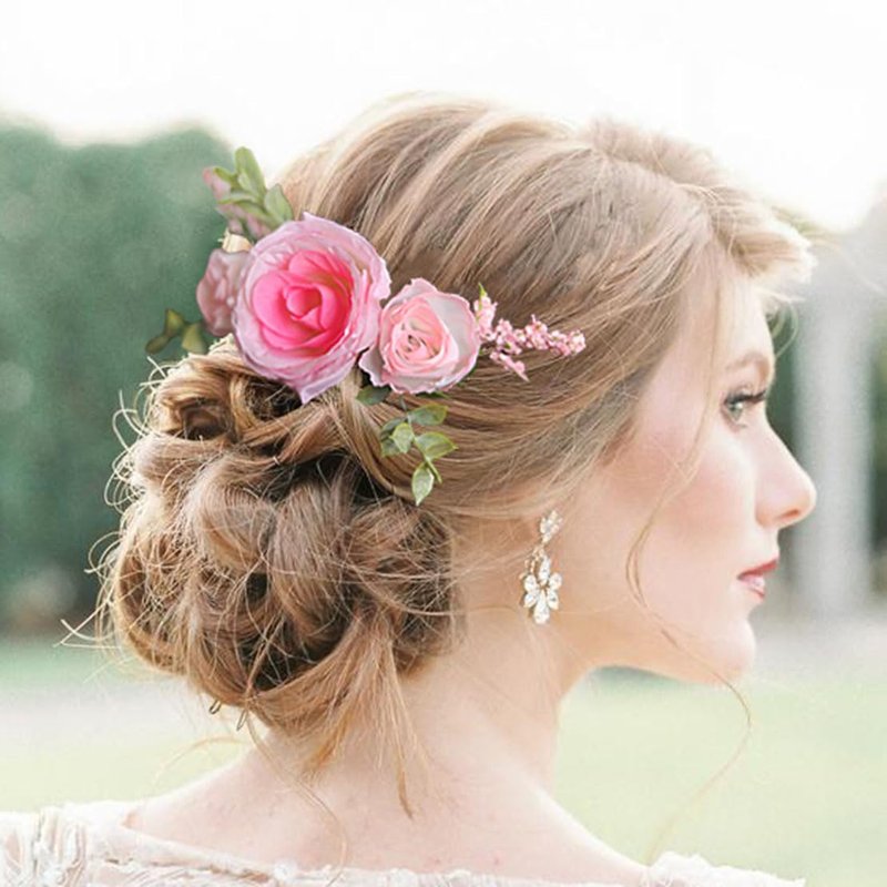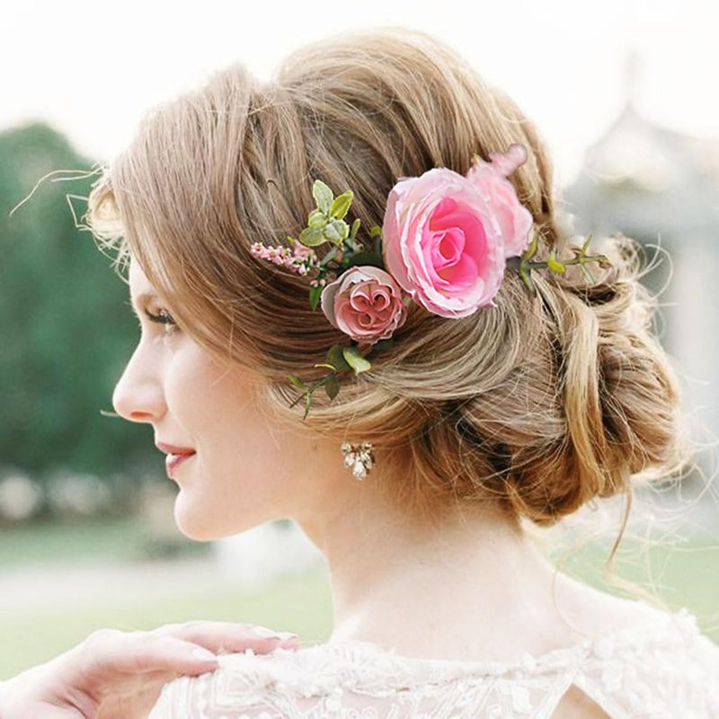 Fangsen Wedding Boho Pink Rose Flower Hair Comb Bridal Headpiece Floral Hair Accessories for Brides and Bridesmaids Silver