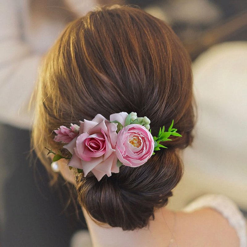 Fangsen Wedding Bridal Pink Flower Hair Comb Clips Wedding Floral Headpiece Hair Accessories