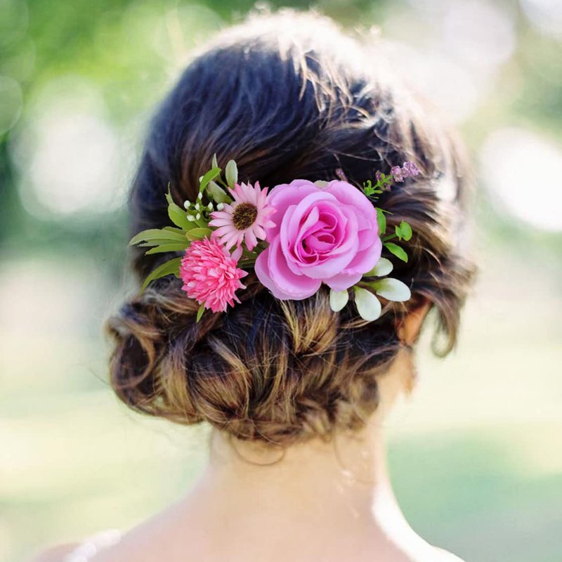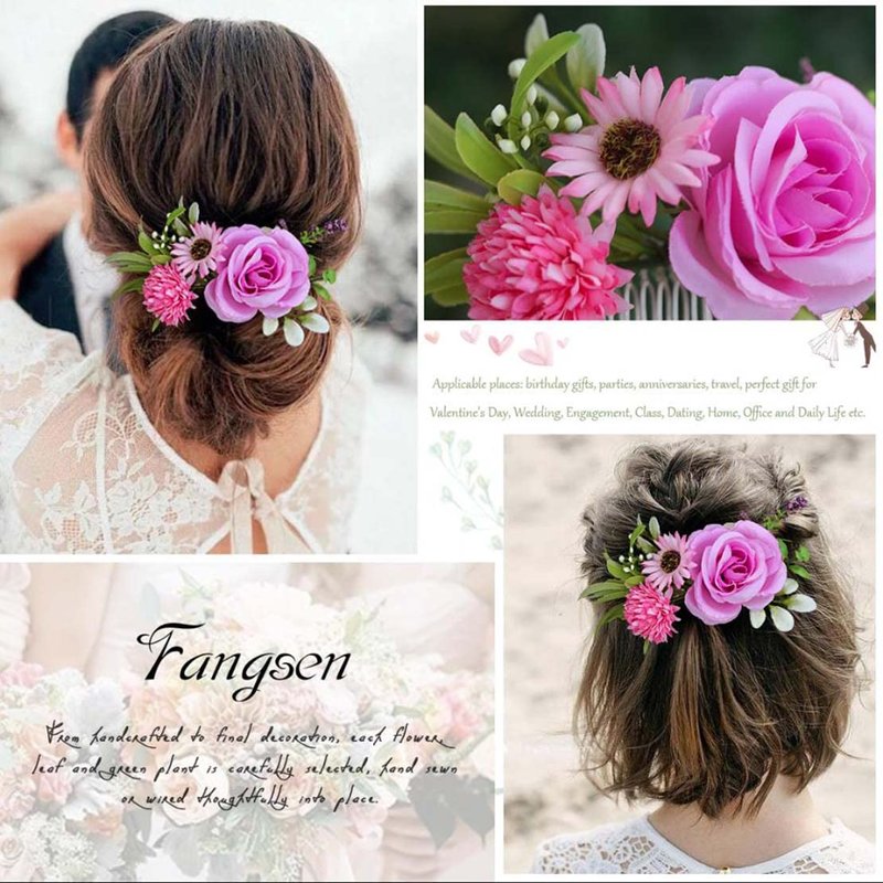 - ✿ Materials: Silk flowers, Plastic leaves,Combs.Rose hair accessories comb ,perfect for those who allergic to flowers and suffer from headaches due to strongly smelling flowersp.
