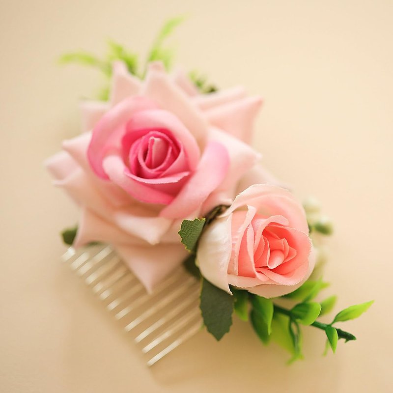 * Material: silk flower,2 flowers and 1flower buds, green plants and hair comb.