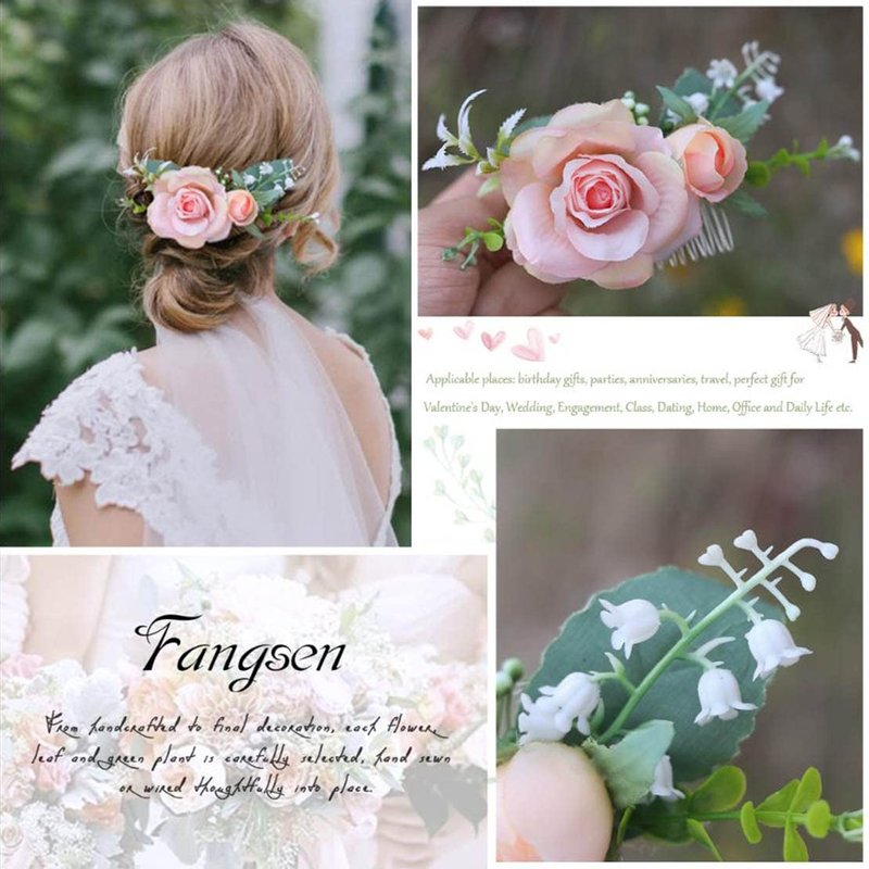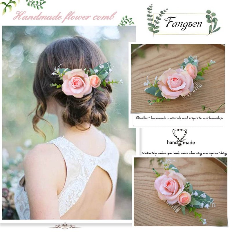 - ✿ Materials: Silk flowers, Plastic leaves,Combs.Rose hair accessories comb ,perfect for those who allergic to flowers and suffer from headaches due to strongly smelling flowersp.