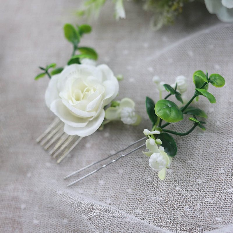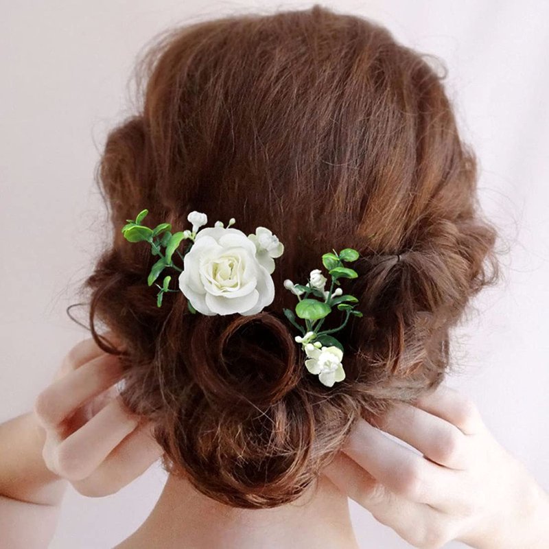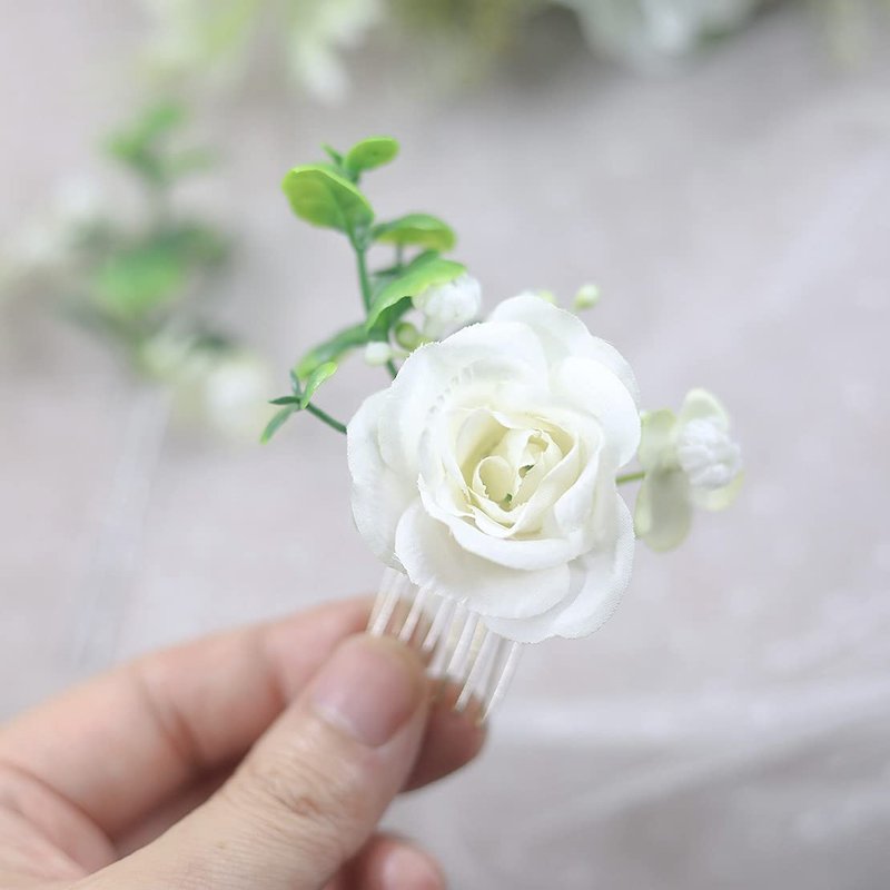 Fangsen Wedding Rose Gypsophila Flower Hair Pins Bridal Headpiece Woodland Hair Accessories Set for Brides and Bridesmaids (Set of 2) (White)