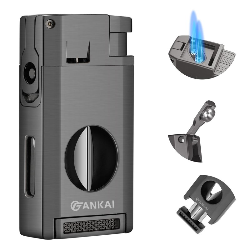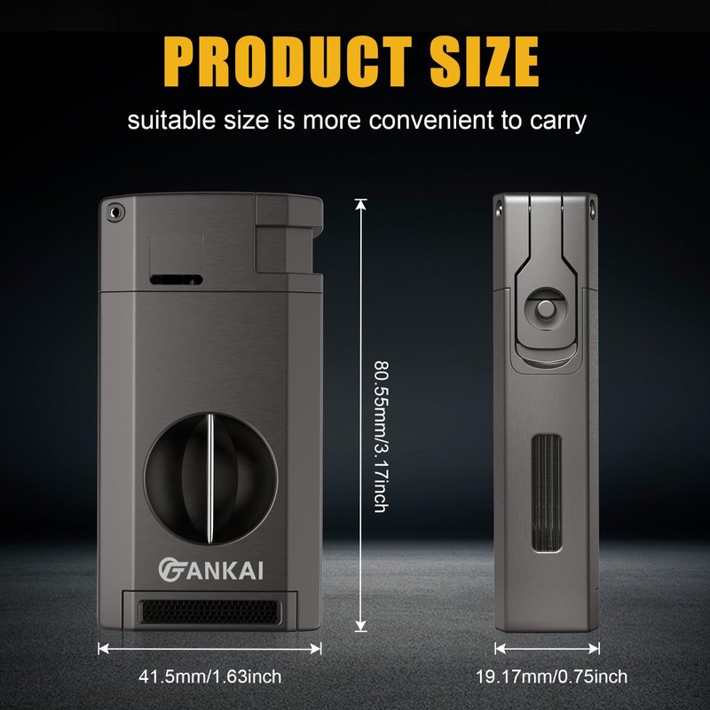 - ð¥Upgraded Deep V Cigar Cutter⺠This butane lighter features a deeper V cigar cutter, making it even more useful for cigar lovers. The sharp cutter can handle cigars with a ring gauge up to 60.if you are a fast smoker,you tend to take more puffs more quickly and more exposed,use this V cutter.